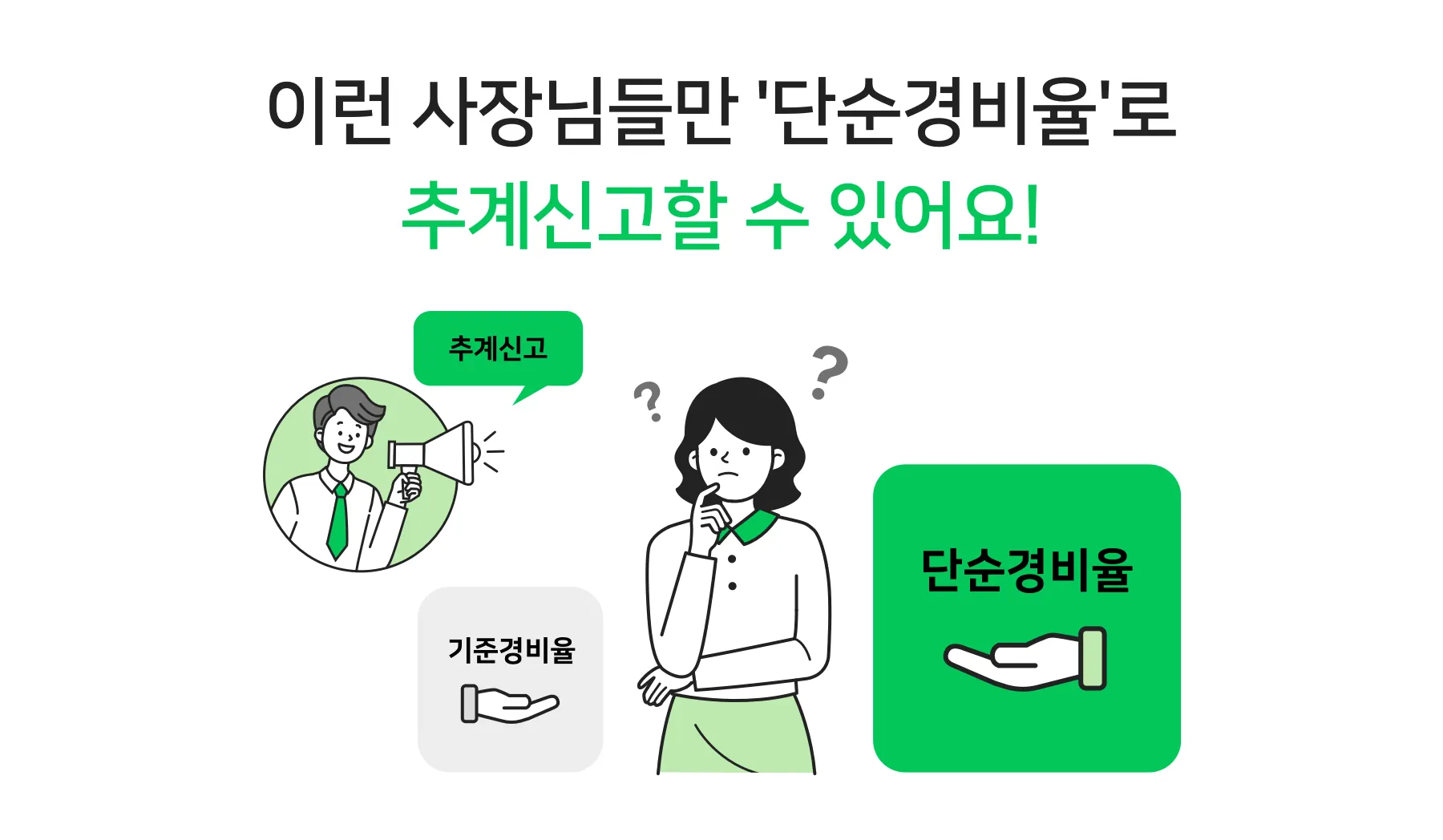 그렇기 때문에 국세청에서는 해당 과세기간에 처음으로 사업을 시작한 신규사업자와 매출이 적은 소규모 사업자들에게만 단순경비율을 적용하고 있습니다.
