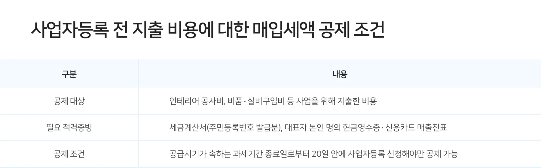 사업자등록 전에 지출한 비용도 매입세액 공제받아 부가세 줄이거나 환급받을 수 있어요