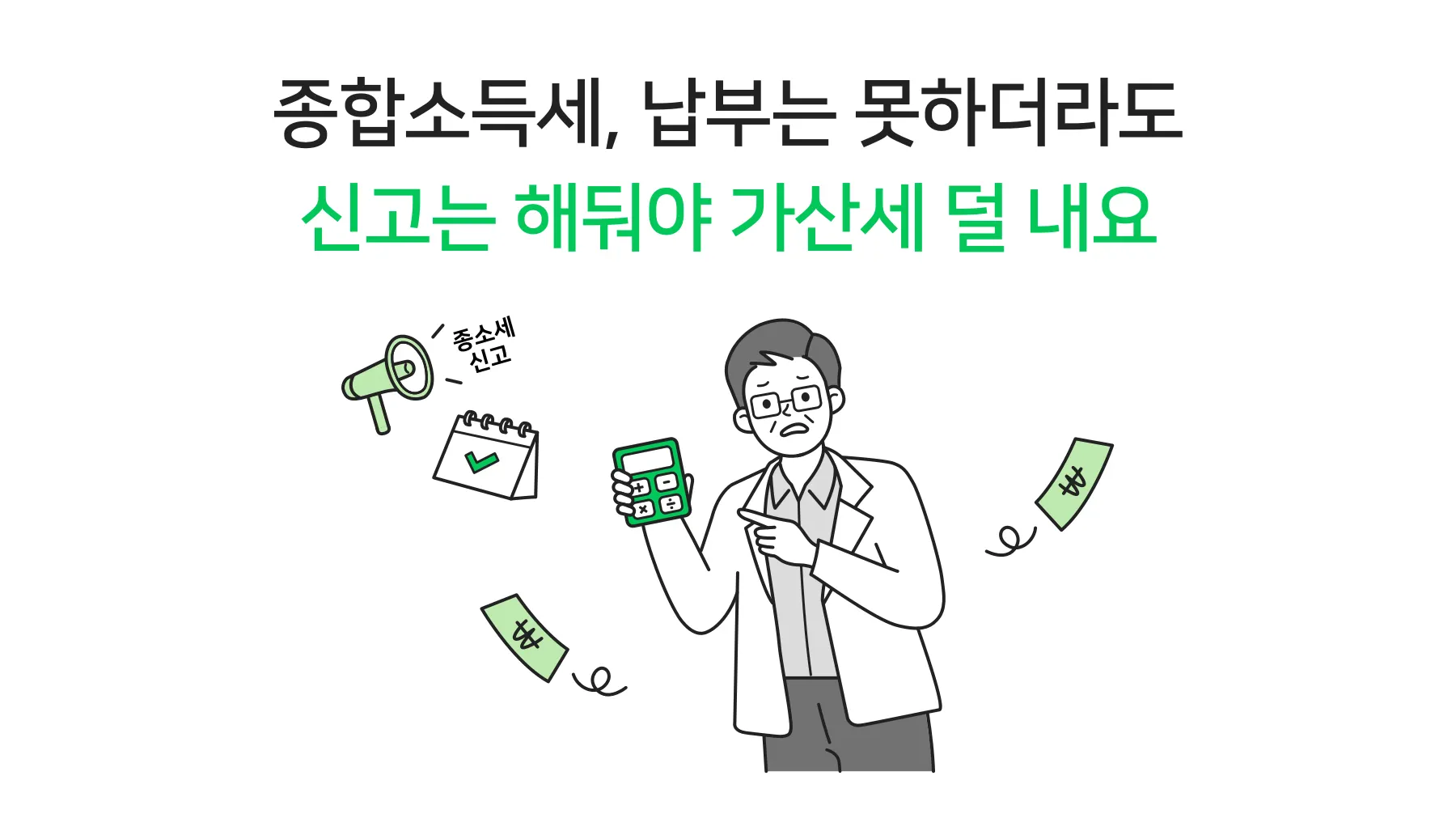 방금 살펴본 것처럼 종합소득세를 법정기한 안에 신고하지 않을 경우 아무리 적어도 원래 내야 하는 납부세액의 20%를 가산세로 부담해야 하는데요. 20%면 정말 작지 않은 비율이죠.